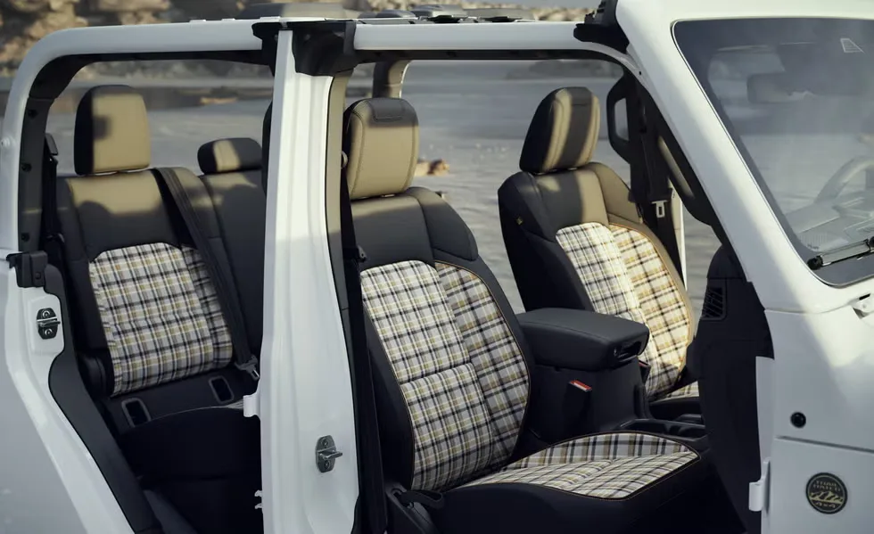 Ako ste godinama zavideli vlasnicima Golfa GTI zbog kultnih kariranih sedišta, sada imate alternativu. 85th Anniversary Edition donosi plaid umetke na sedištima u oba modela – Jeep Wrangler i Jeep Gladiator. Isti dezen se diskretno pojavljuje i na delovima komandne table, dok posebnu atmosferu upotpunjuju: